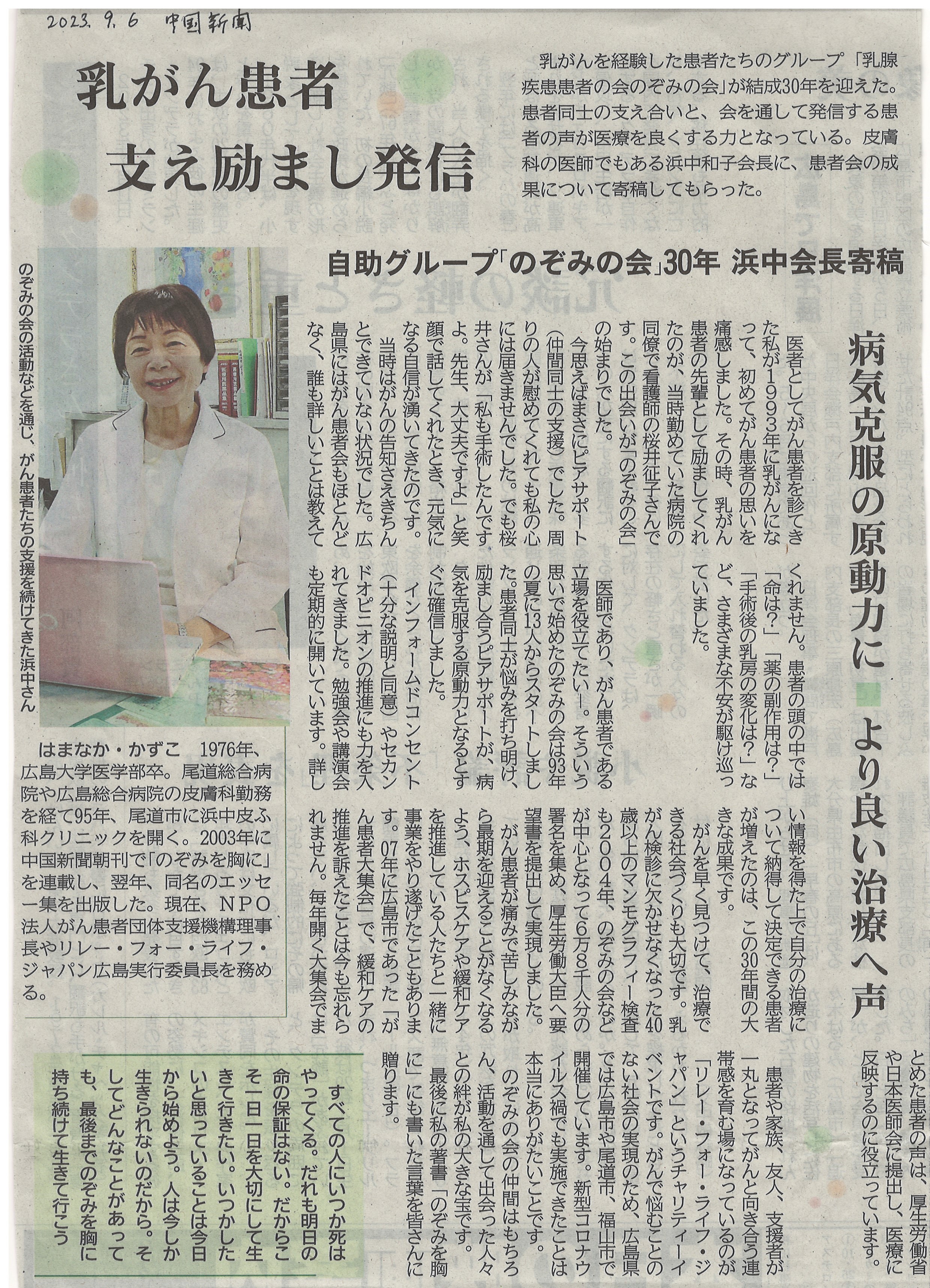 乳腺疾患患者の会「のぞみの会」(会長) |